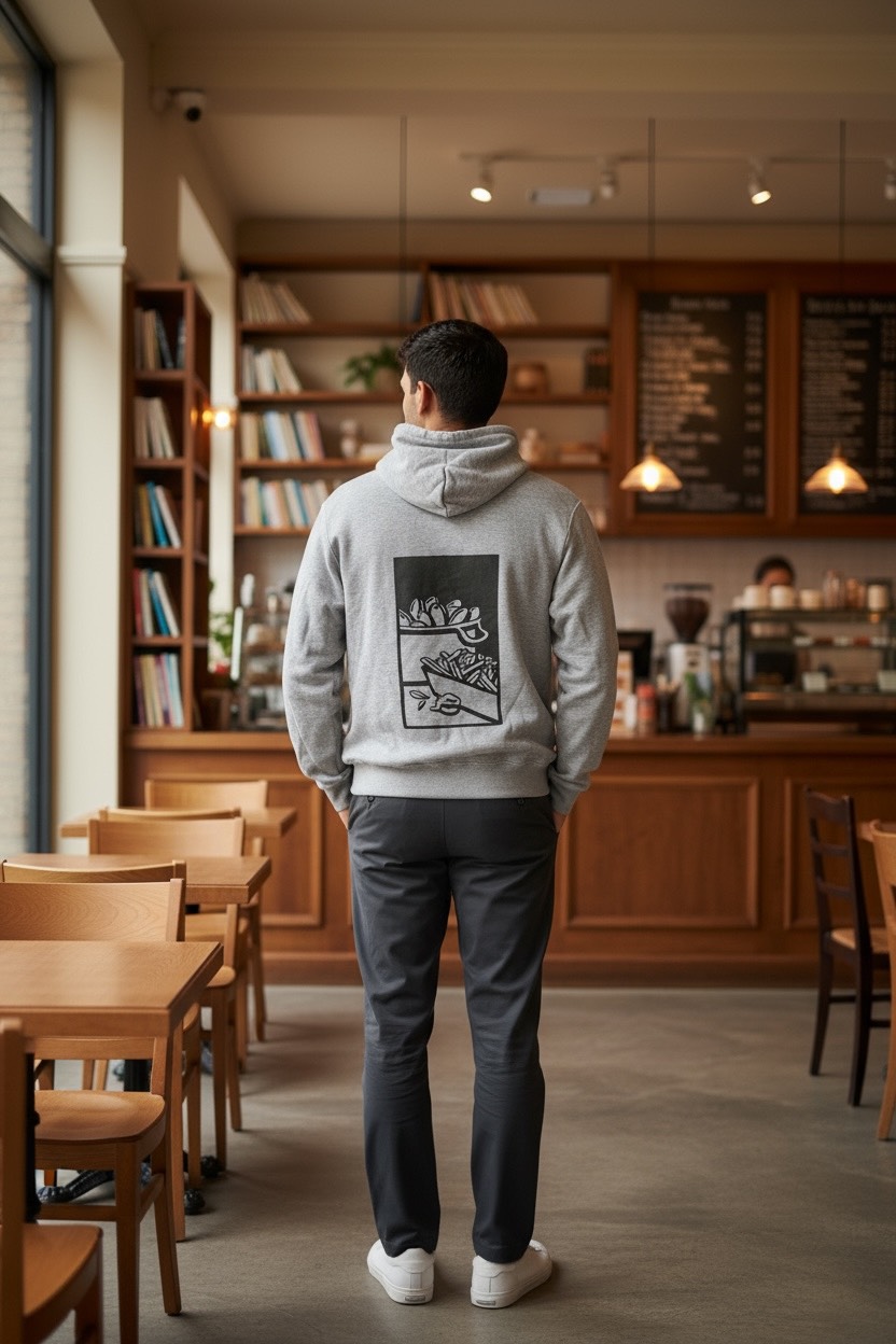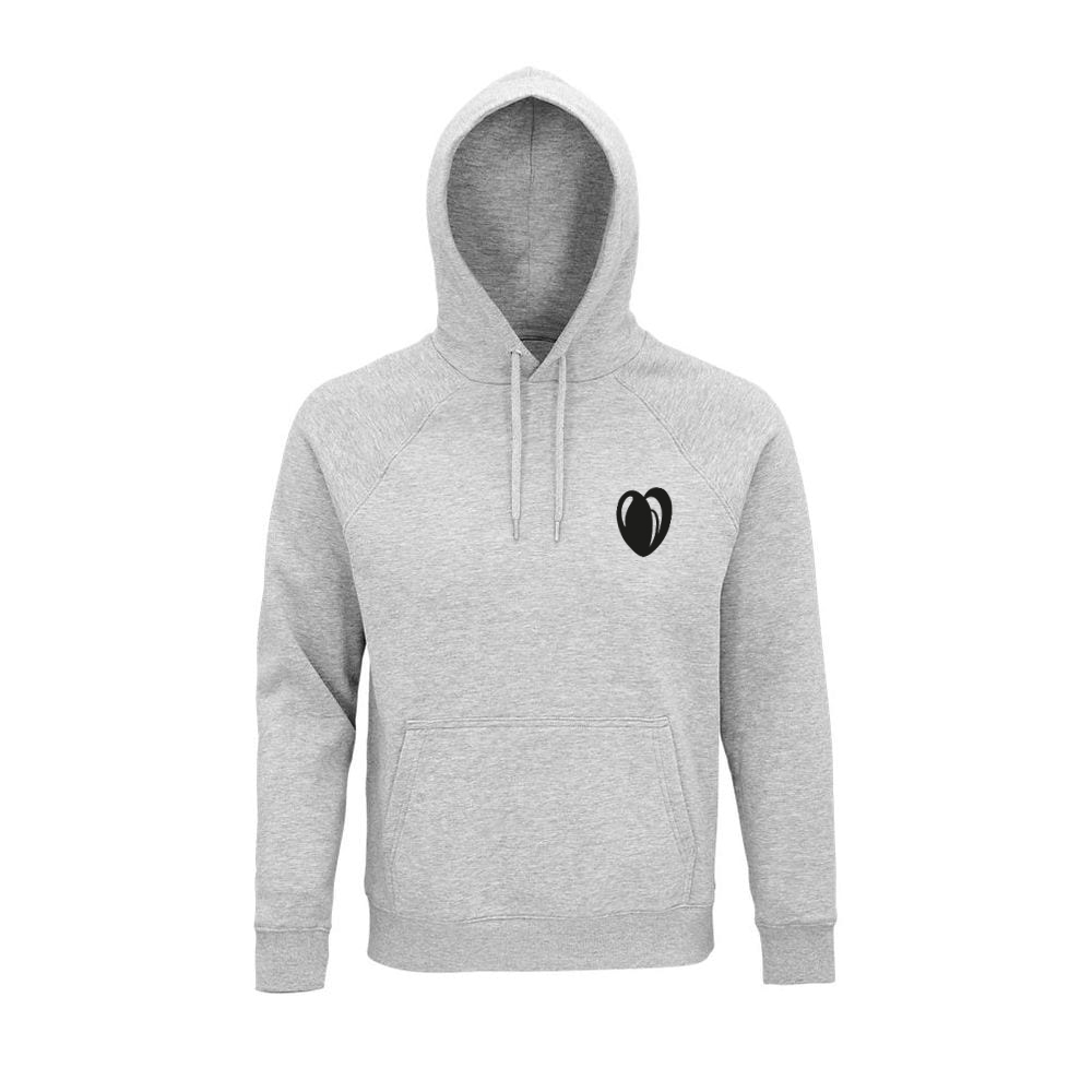 Sweat à Capuche Bio, Motif “Cœur de moule” – Couleur Gris Chiné