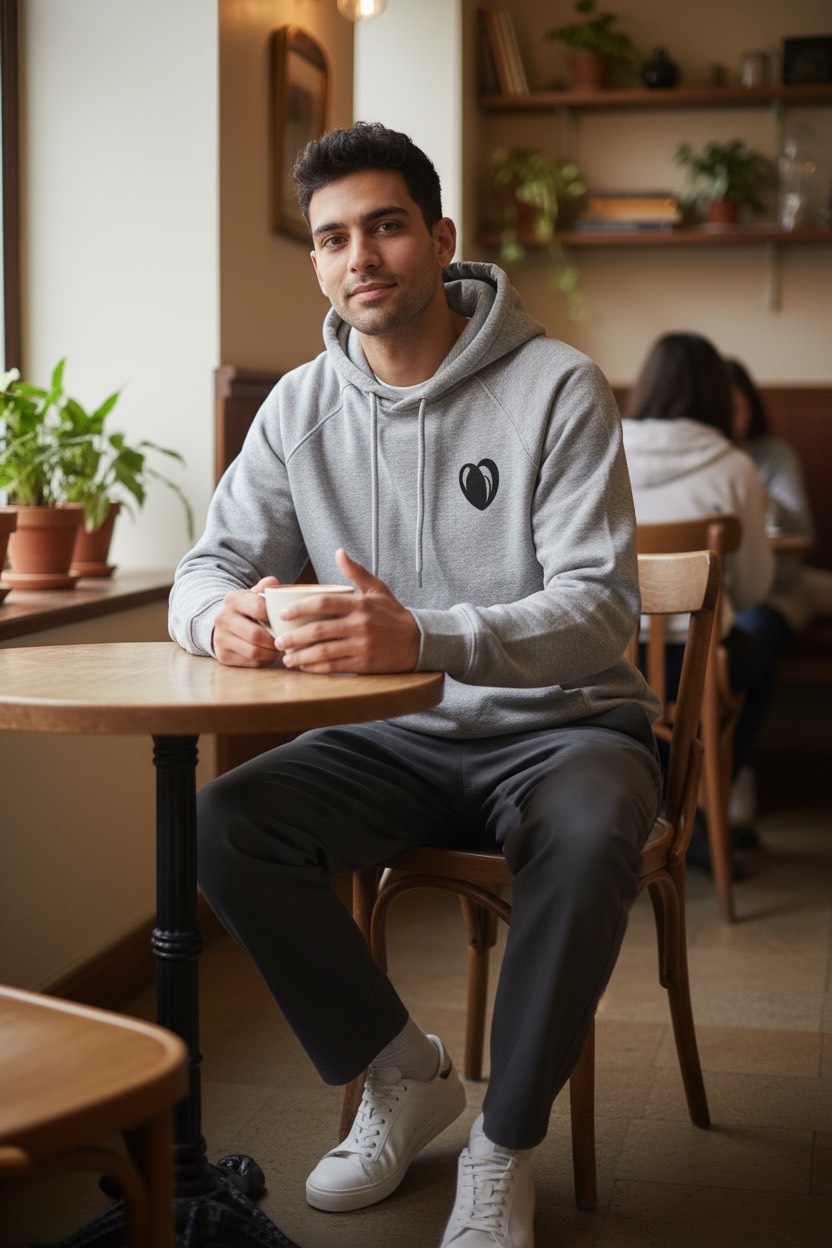 Sweat à capuche « Cœur de moule » – Gris chiné