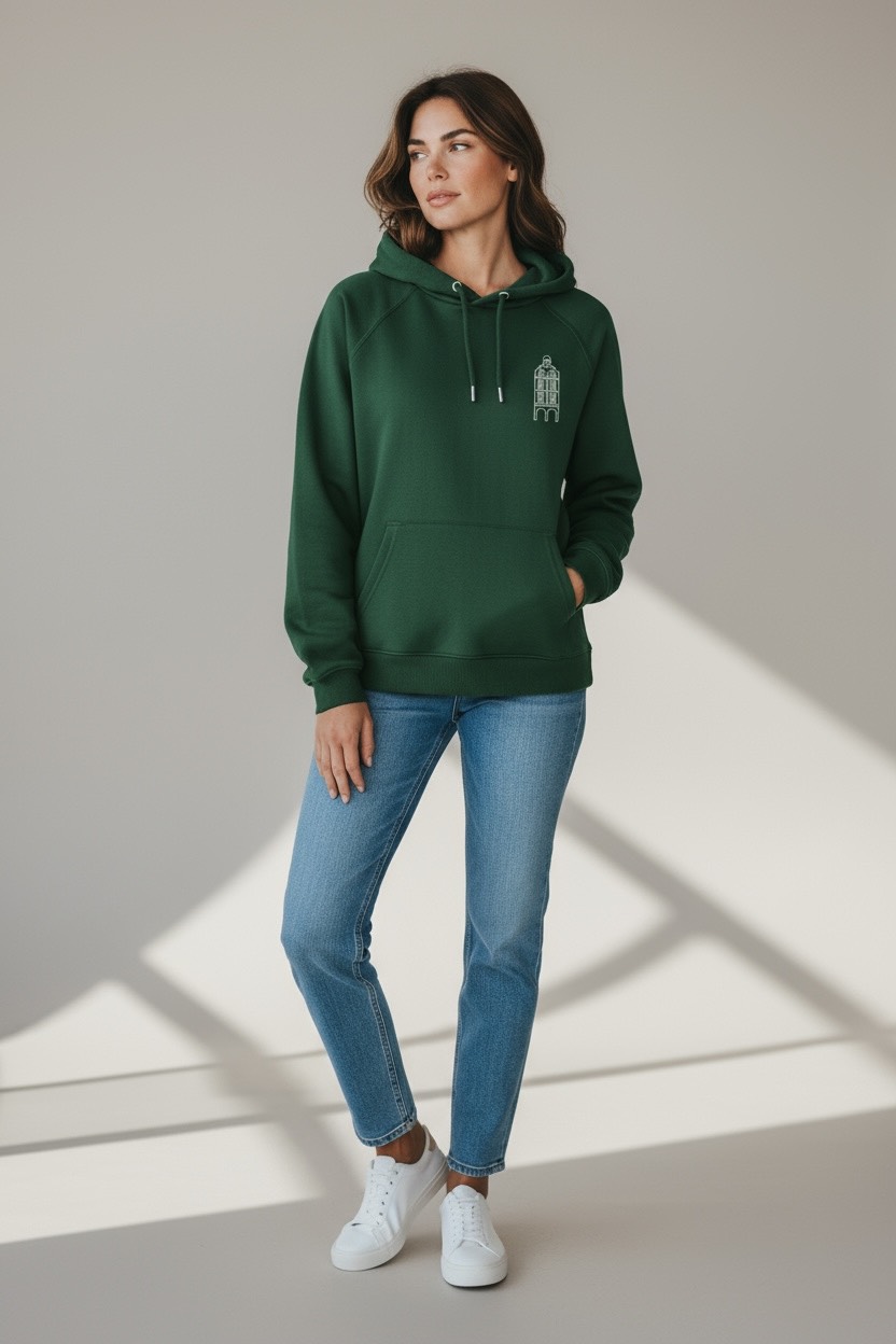 Ce sweat premium 280 g/m² célèbre l’élégance et le patrimoine architectural d’Arras à travers une broderie raffinée des maisons flamandes de la Grand’Place.