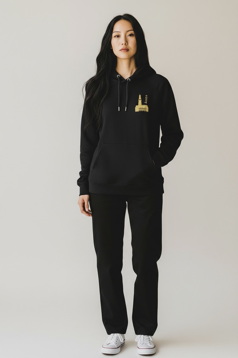 Sweat unisexe 280 g premium, capuche doublée, poche kangourou et finitions renforcées. La broderie dorée du Béffroi d’Arras apporte une touche élégante et intemporelle, symbole fort de la ville.