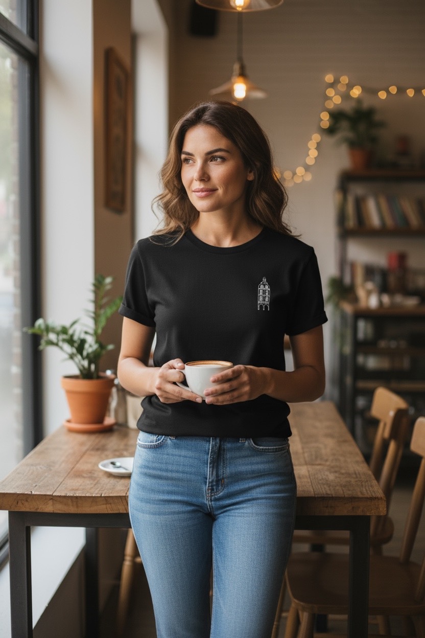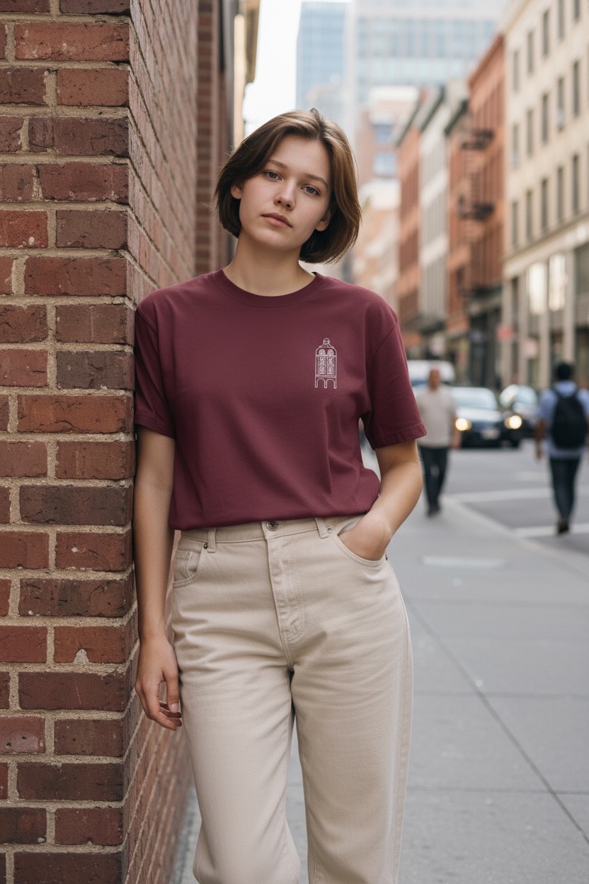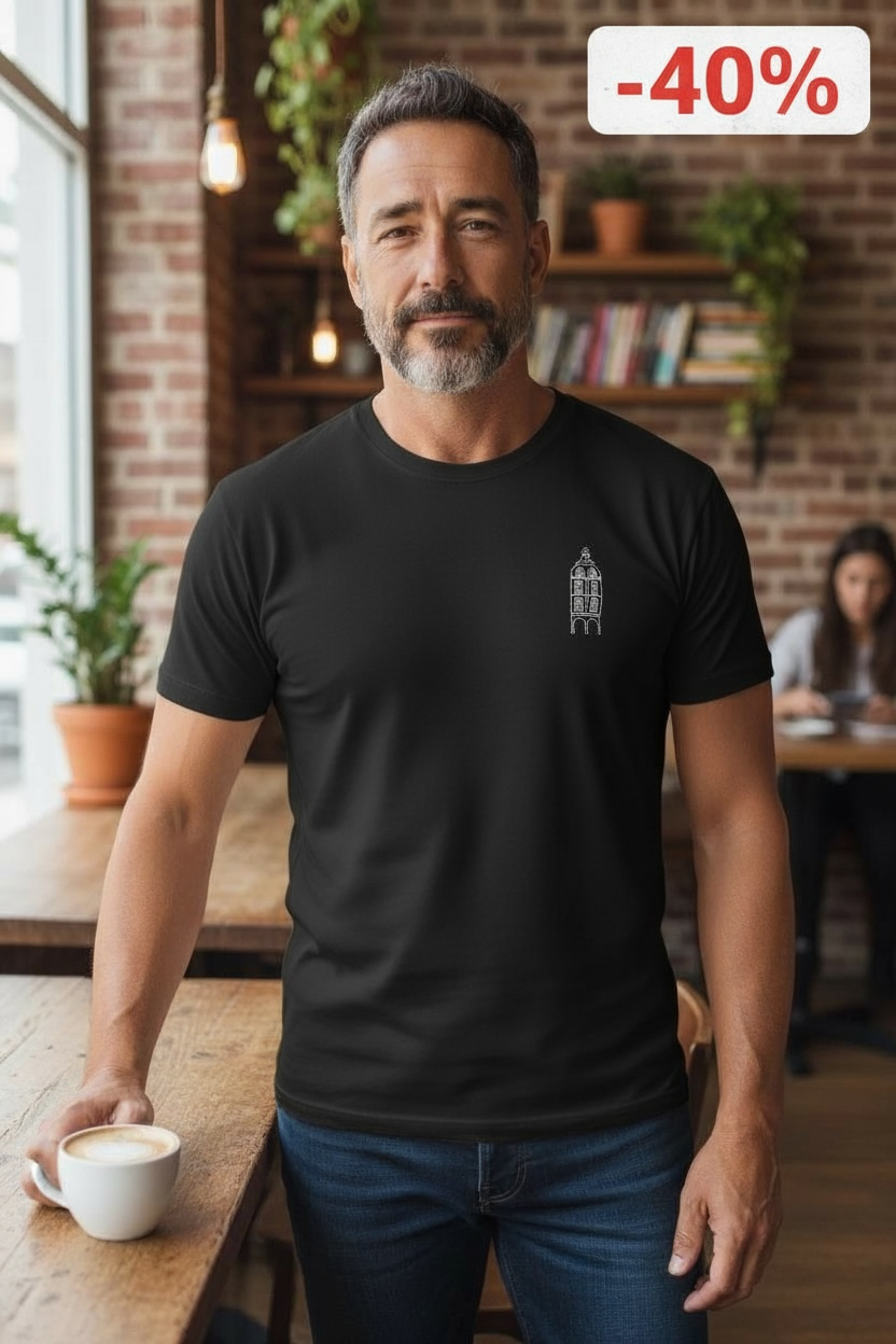 Parce qu’il incarne le lien profond entre design textile et culture locale. Chaque broderie représente l’une des maisons emblématiques de la Grand-Place d’Arras, symboles de l’histoire architecturale du Nord. En portant ce t-shirt, vous portez un morceau de patrimoine, une part d’identité arrageoise.