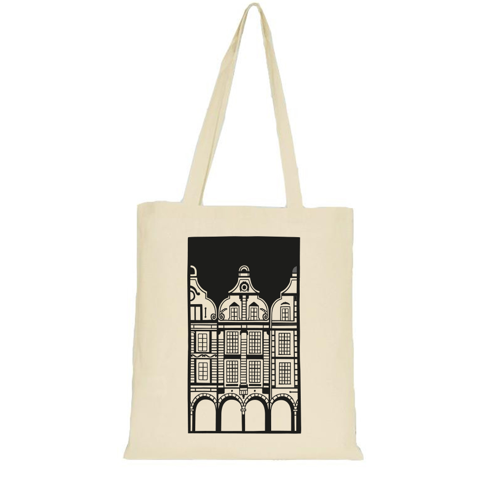 Tote Bag sac shopping motif « Façade d’Arras », couleur Naturel
